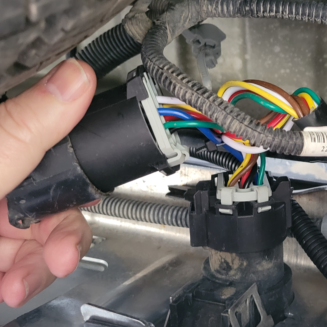 For most PRE-2019 trucks, PSM provides a harness assembly that connects behind the bumper to the 7-pin trailer wiring.