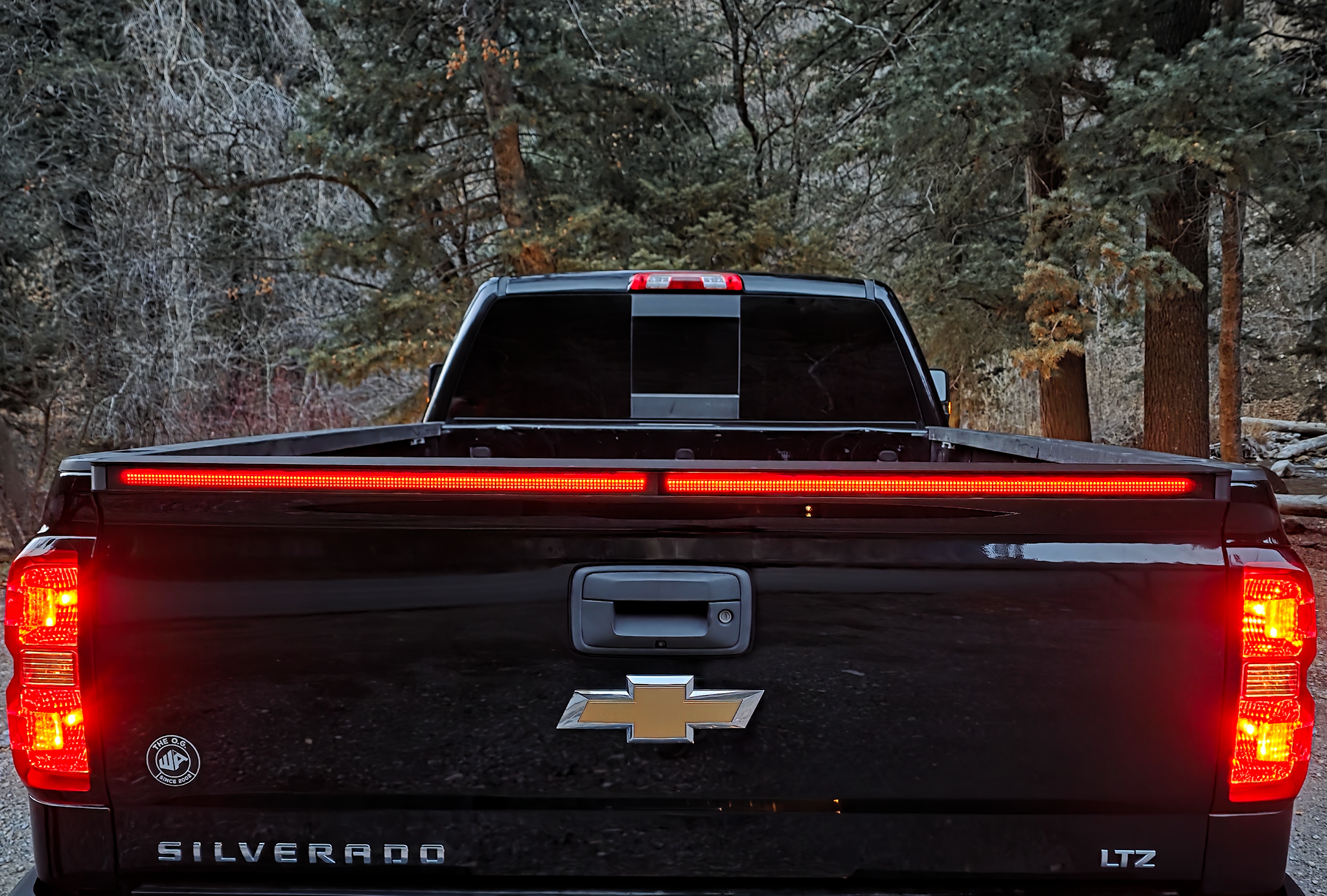 STANDARD Tailgates: Come in one peice with a single light bar and feature sequential turn signals in amber or red depending on light bar selected.